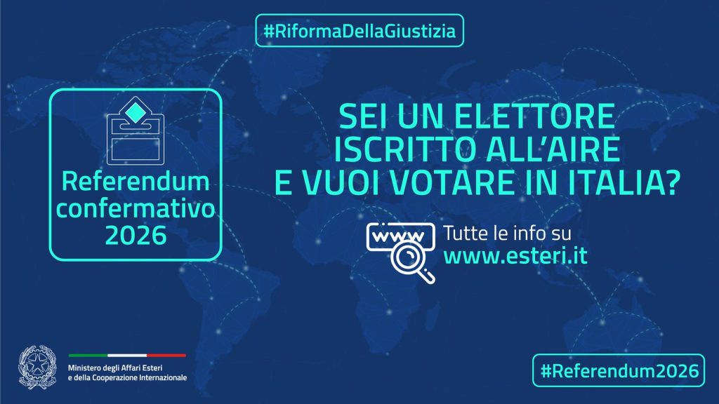 Si ricorda che il VOTO è un DIRITTO tutelato dalla Costituzione italiana e che, in base alla Legge 27 dicembre 2001, n. 459, i cittadini italiani residenti all’estero o temporaneamente all’estero, iscritti nelle liste elettorali, possono VOTARE PER POSTA, ricevendo il plico elettorale al proprio indirizzo di residenza.